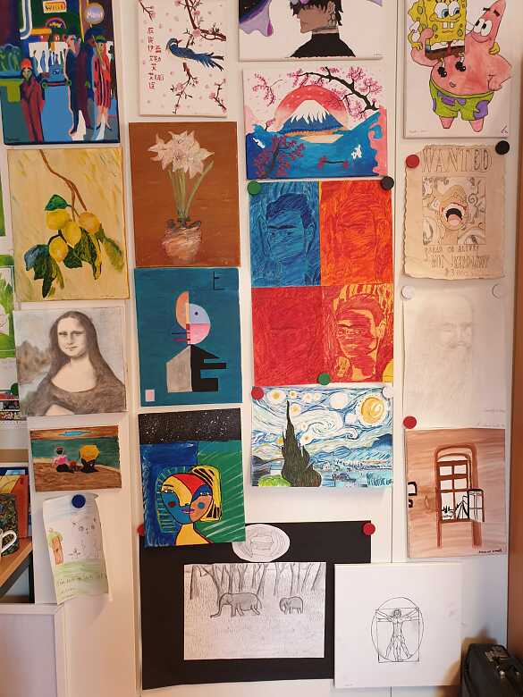 Bevor die 10. Klassen die NOG verlassen haben, haben sie nicht nur gezeigt, dass sie Mathe, Deutsch und Englisch beherrschen, sondern mit ihren Abschlussarbeiten in Kunst bei Frau Yildiz eine wunderschöne Sammlung erstellt. Offensichtlich waren oft große Künstler und Kunstwerke Vorbild.