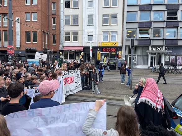 Am 10.10. war richtig was los auf dem Bremer Marktplatz! Hunderte Schüler:innen haben sich getroffen, um für ihre Zukunft auf die Straße zu gehen. Schon beim Demozug durch die Innenstadt war die Stimmung mega – überall bunte Schilder, laute Parolen und ganz viel Energie.