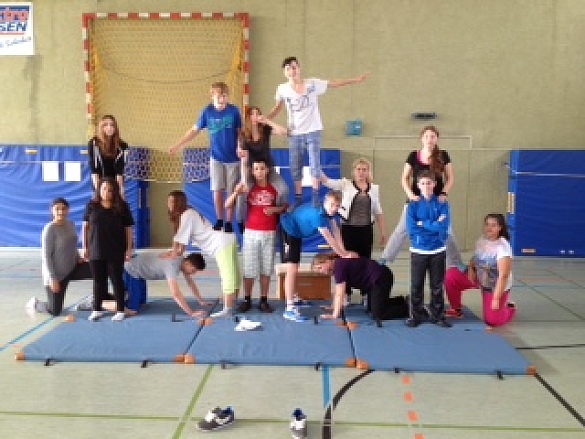 In der Unterstufe (Jahrgänge 5 und 6) stehendas soziale Lernen und die Förderung der motorischen Grundeigenschaften im Vordergrund. Vor allem durch kleine Spiele und kooperative Spielformenkönnen die Zusammenarbeit, das Einhalten von Regeln, Fairness und derTeamgeistgesteigert werden. Dies kann positive Auswirkungen auf die Klassengemeinschaft haben. Im sechsten Jahrganglegen wir einen Schwerpunkt auf das sichere Schwimmenin mindestens einer Schwimmlage. Da wir in aller Regel mit den Fahrrädern zum Schwimmbad fahren, lernen die Schülerinnen und Schüler densicheren Umgang mit den Fahrrädern im Stadtverkehr.